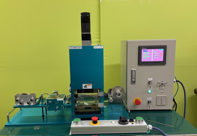 小型精密スクリュープレス機、材料送り装置、巻き取り装置をユニット化させました。